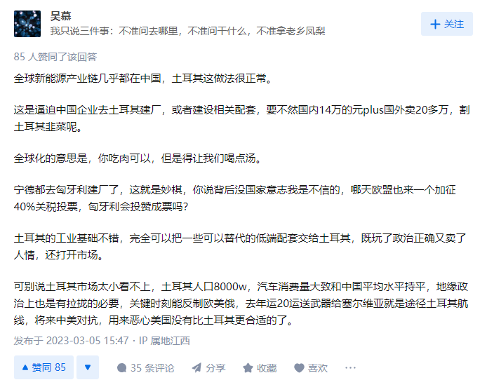 我认为,真要是土耳其建厂,也不会有改观,可能会更被动。