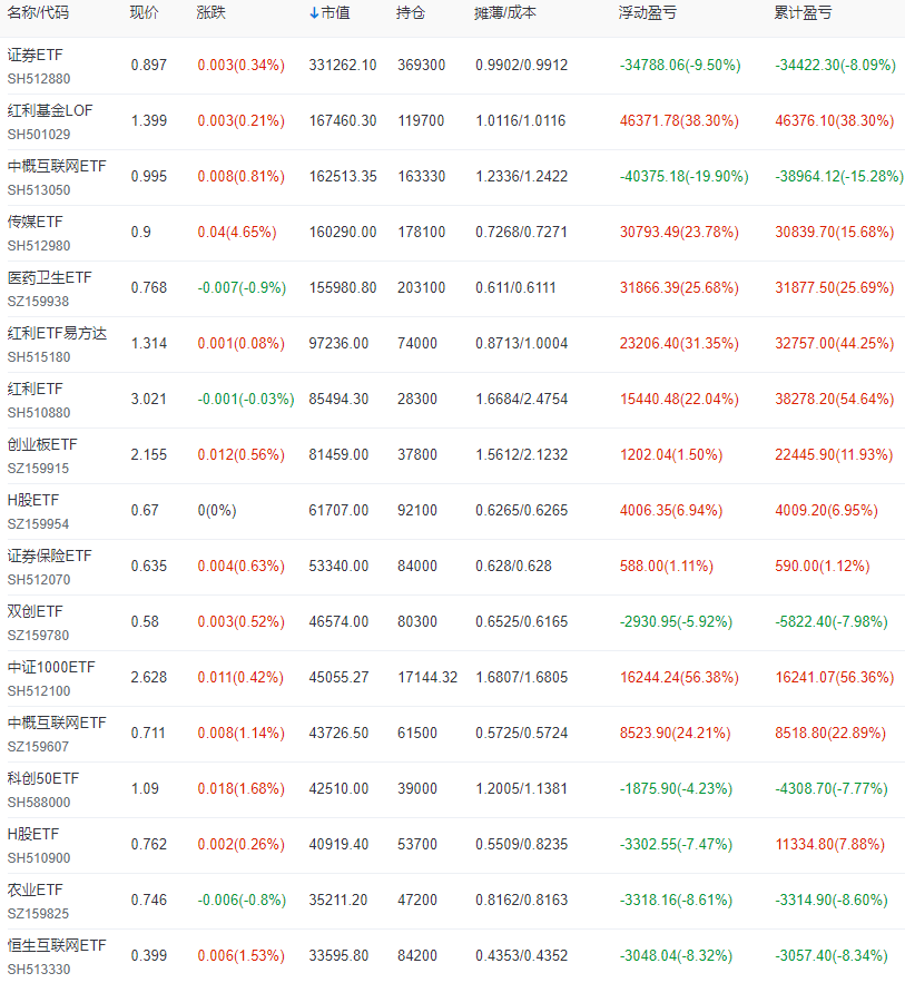 传媒ETF和纳指ETF,涨了这么多,好多人,问我卖出没?我一分没卖,我买它们,不会看这一点利润的,特别是传媒,我是看好几倍的,反正成本低,我不怕它过山车。