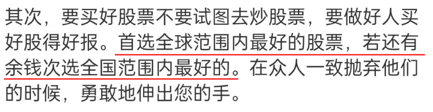 只是,他说的是股票,我说的是符合三大纪律的指数基金,在我看来,不是谁都值得"雪中送炭"的,还是要区分。