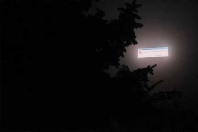 一个电子广告牌死机了。。。那天晚上正好又起雾。。。于是,冥冥夜空中,这一切看起来就十分诡异了
