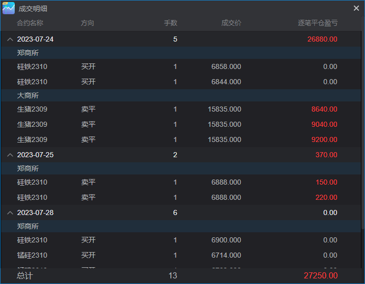 前面大A连续下跌时,我不是全仓了嘛,把闲钱,挤了又挤(见我于7月21日写的《牛市起点》),还余5千左右,花了点,今天只转了4千5百元进新开通的真实的期货账户里,可怜了,这点点钱,不好操作,看明后天,还会有会有闲钱,再转点进去。
