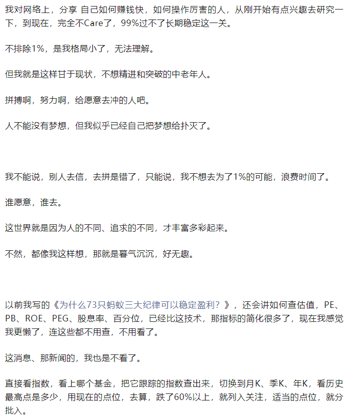最详细的文章,大概9千字,2023-09-09 又重新整理发布了,标题为《为什么73只蚂蚁三大纪律可以稳定盈利?》