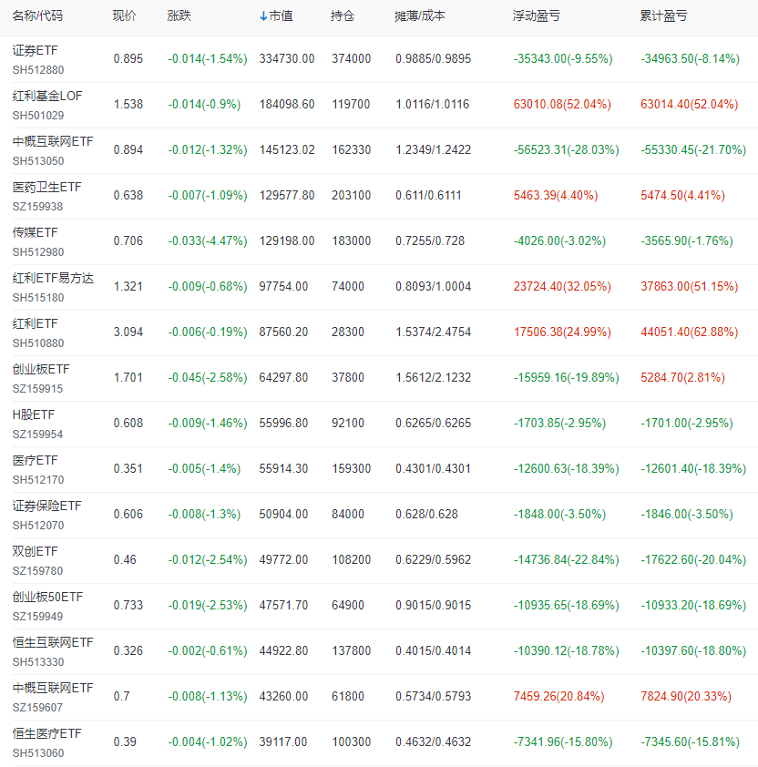 中证2000ETF 跌6.83%,传媒ETF 跌4.47%,在我关注的列表中,这算今天跌幅较大的,前面涨得好,现在跌得多,但离前期低点,还远得很,自然,我不会动再买入的心思。