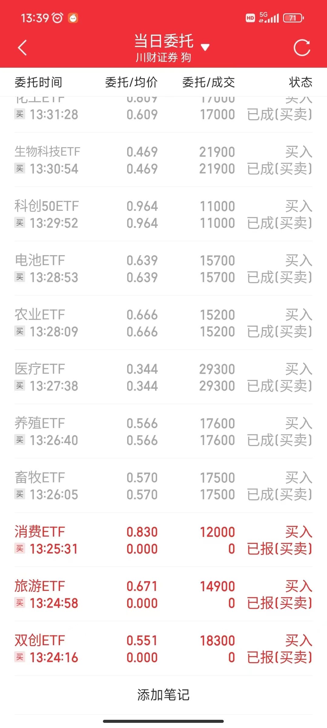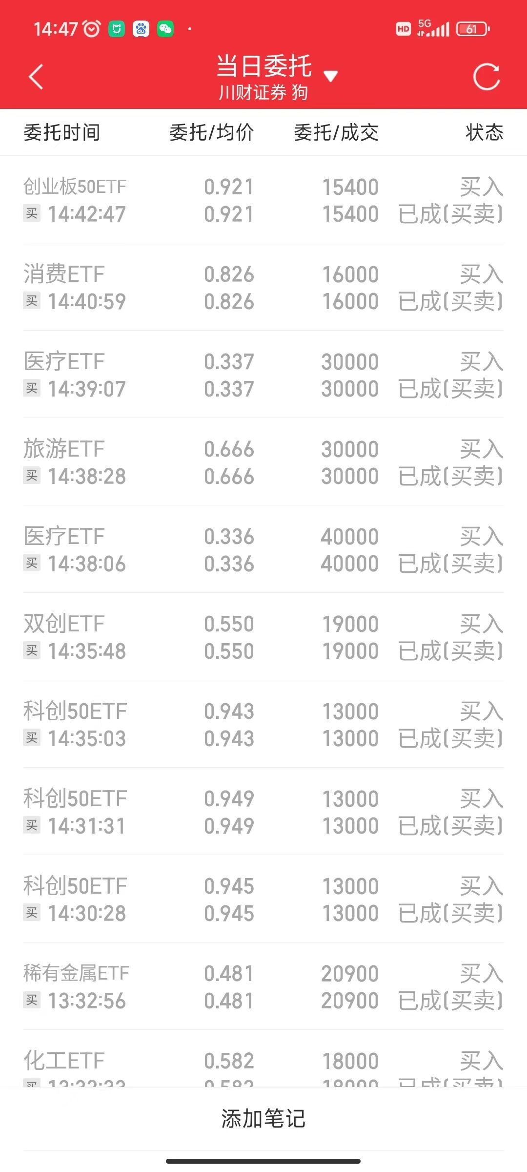 这里贴一下今天的交易截图