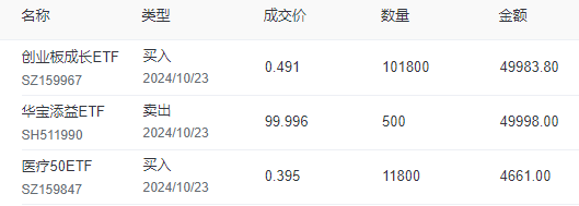 以99.996卖出500份$华宝添益ETF(SH511990)$ 得现金5万,以0.491买入101800份 $创业板成长ETF(SZ159967)$
