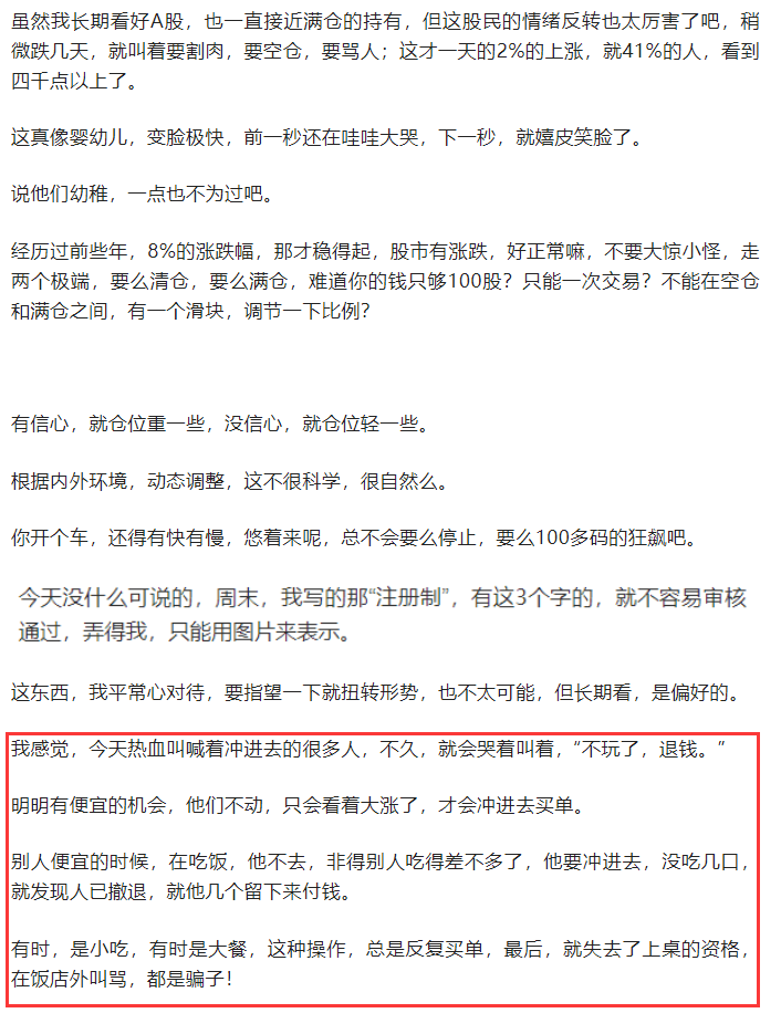 2月20日,上证大涨2.06%,当天,我写的文章《41%的人看到四千点以上》中有这样描述