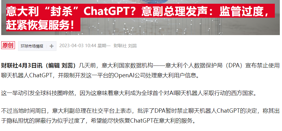 昨天才出的消息,ChatGPT被某国封禁,今天就要解封!