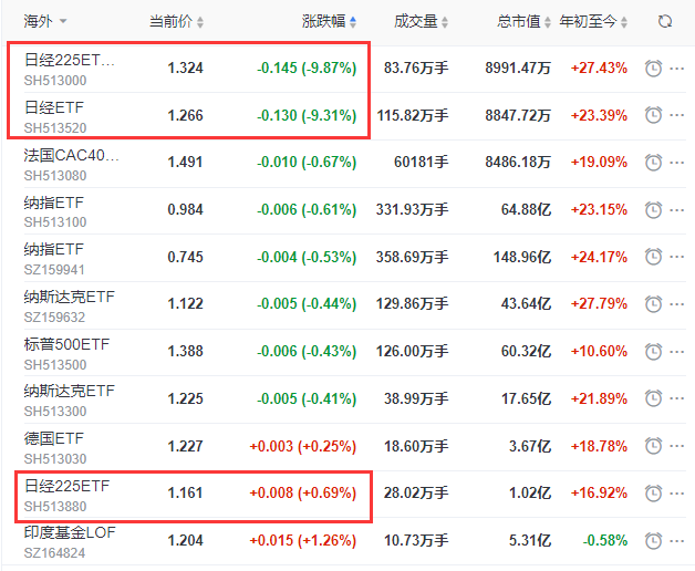 而溢价最小的那只,今天仍然是上涨的,因为今天的日经225指数本身也是上涨的。