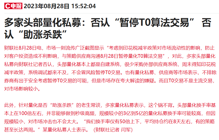 所以,盘中,就暂停了T+0,晚上又通知恢复了,简单说,就是自动化交易策略,因为是电脑在执行,早上大幅高开,触发了它的卖出策略,这几年,全市场的这种资金量可能上万亿,指数自然被就压下来了。