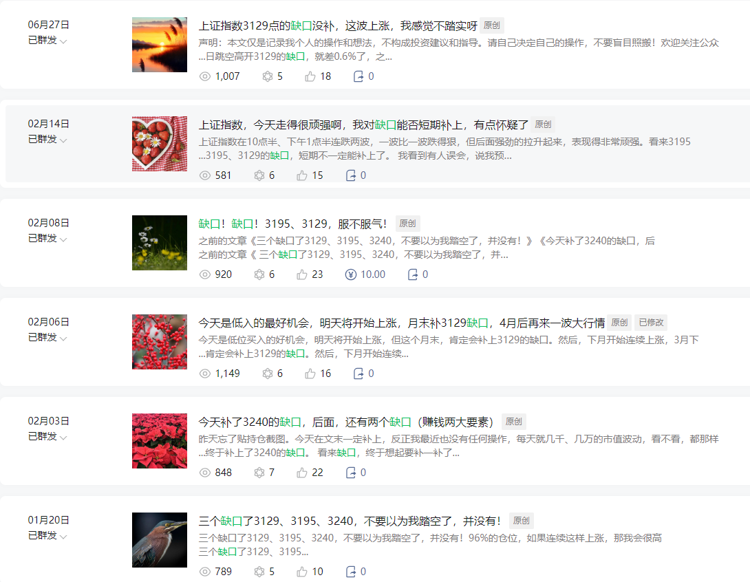之前的文章中,光标题中提到缺口的就有6次,正文中提到的次数更多,终于,2023年1月5日,上证指数跳空高开的3129点缺口,还是补上了。