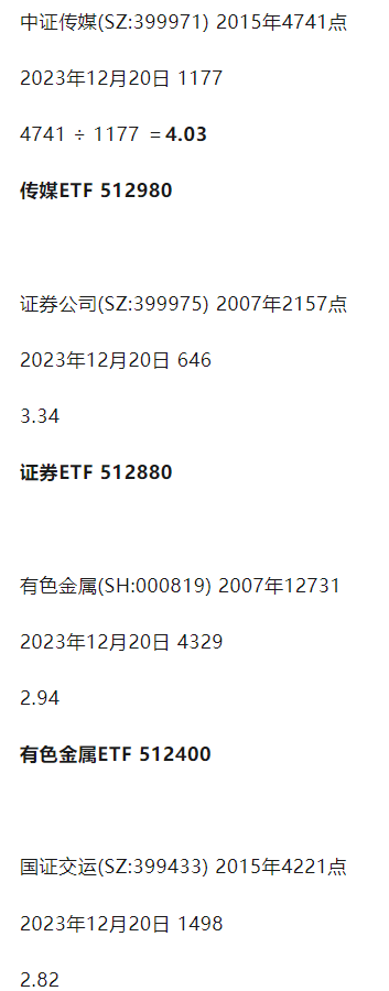 以前我是主要看它们的百分位和估值的,现在主要是看价格和点位了,原因有两个: