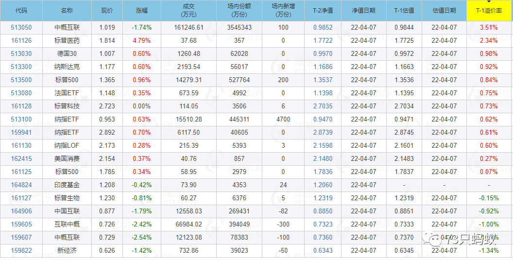 需要注意的是,像513050的溢价,并不准确,因为,它既有美股,又有港股,美股的价格是昨晚的,港股的价格是当天的,且A股收盘后,港股还会交易1小时,到16点止。