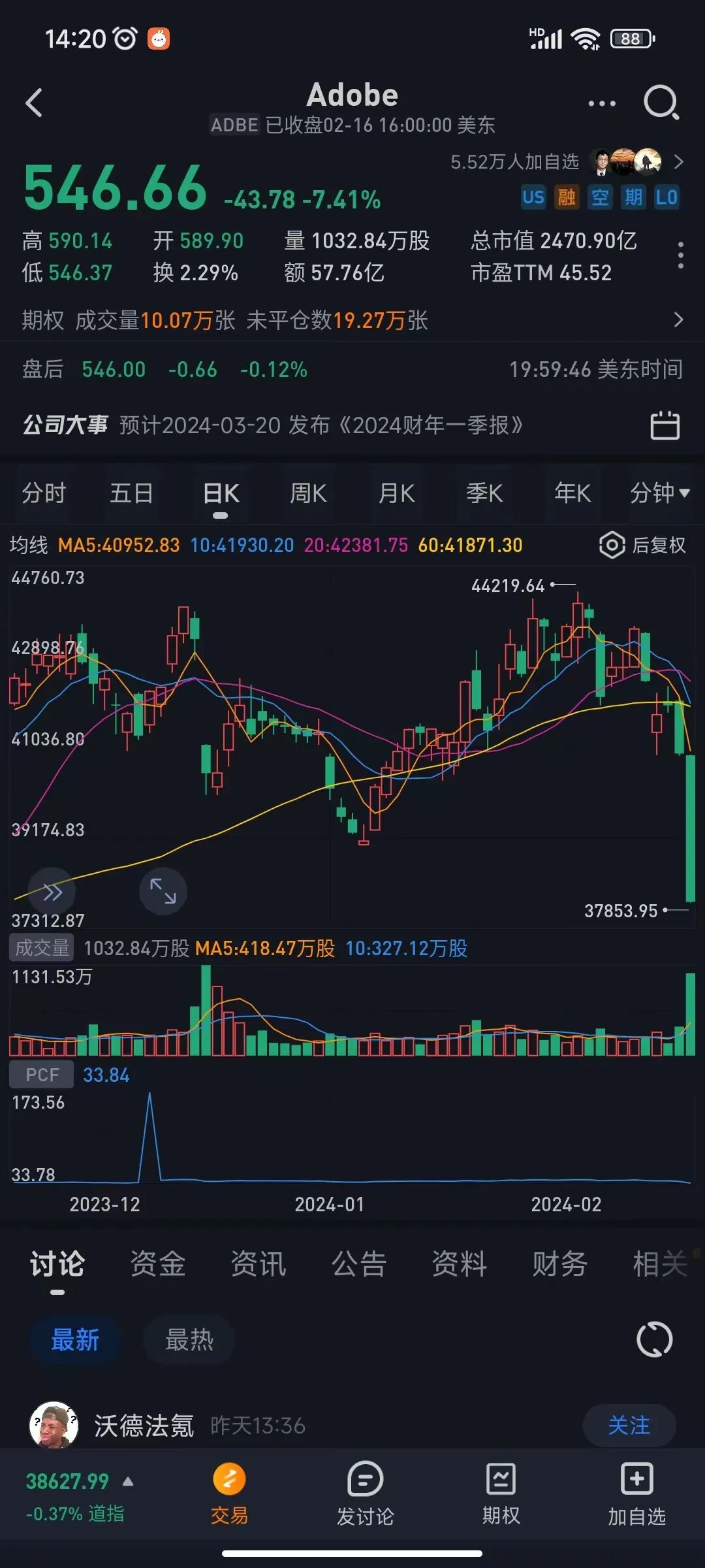 回到当下,Adobe的股价,已经崩了,据说是被Sora吓的
