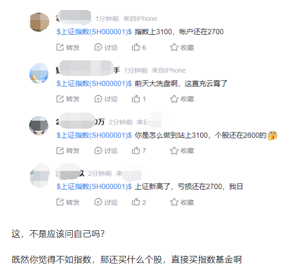 不能清晰认识自己人性中的贪嗔痴,你还是看不上指数的波幅,贪图个股的刺激,图那遥不可及的成功,那自然就得承受失败的后果。